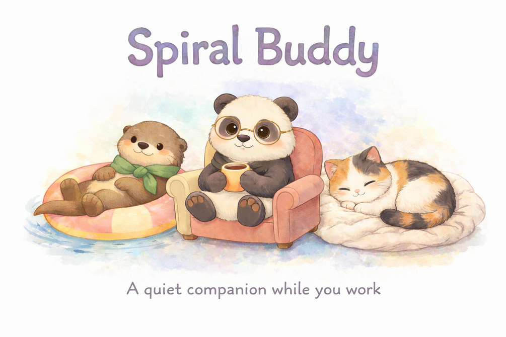 Spiral Buddy is a small desktop companion for moments when your brain is loud, but you still need to be at your desk.